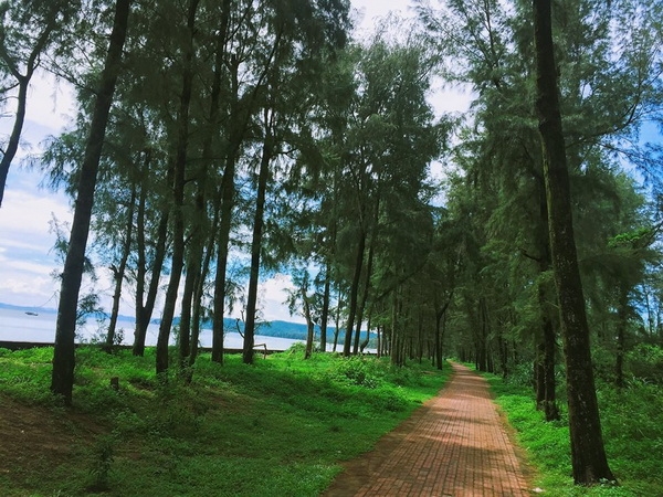 Du lịch đảo Cô Tô chắc chắn các bạn sẽ được nghe tới một con đường lãng mạn mang tên Đường tình yêu. Con đường dài hơn 2km được lát gạch đỏ, men theo bờ biển, nằm cách Trung tâm thị trấn Cô Tô khoảng 100 m, hai bên là hai hàng dương xanh ngắt, lay theo gió. Gọi là con đường tình yêu cũng đúng, bởi khi đi dạo ở đây, dù đi bộ, hay đạp xe chầm chậm, đều vô cùng lãng mạn. Tại con đường này, bạn sẽ được nghe tiếng hàng dương vi vu, tiếng sóng biển rì rào, cảnh trước mắt xanh ngắt màu của rừng cây, vàng của ánh nắng, và đỏ của gạch lát, không thua gì trong các bộ phim truyền hình lãng mạn Hàn Quốc.