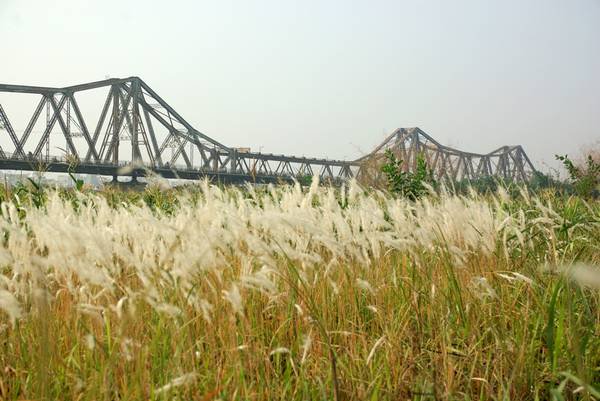 Từ trên cầu Long Biên nhìn xuống sẽ thấy một Hà Nội hoàn toàn khác với cảnh ồn ào náo nhiệt của đô thị. Bãi giữa Sông Hồng được thiên nhiên ưu đãi cho những bãi cát trải dài cùng với những cánh đồng lau sậy bông trắng nhẹ nhàng đu đưa trong gió, những hàng chuối xanh bên lề tạo cảm giác mộc mạc hoang sơ mà yên bình, trong lành.