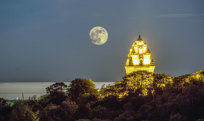 Vẻ đẹp huyền ảo của tháp Nhạn vào một đêm trăng rằm