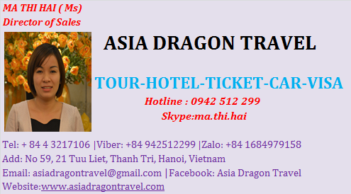 I am Ma Thi Hai (Ms), working as a Director of Sales & Marketing Executive of ASIA DRAGON TRAVEL. We are finding potential partners in hospitality field to co-operate. We hope to get your support to provide better services and flexibility to visitors to Vietnam.Our services: