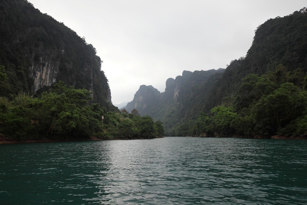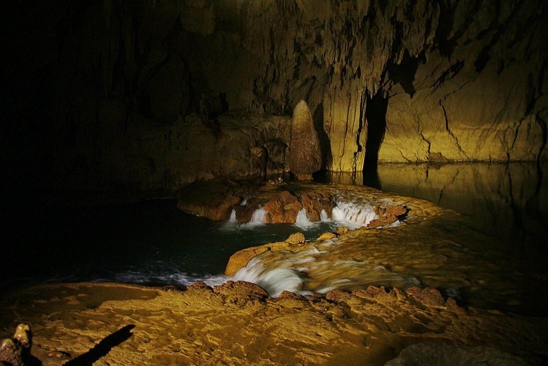 Làn nước trong xanh cùng những vành đai thạch nhũ cuả hang Tú Làn