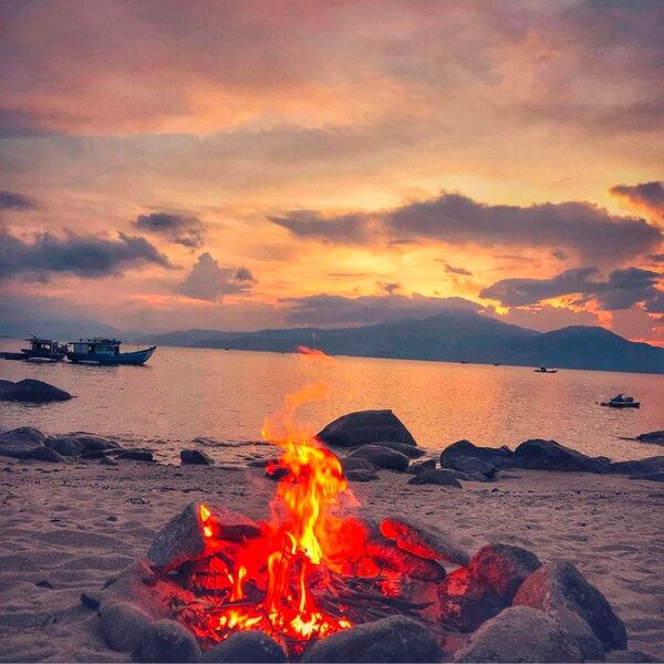 Đốt lửa, cắm trại là hoạt động mang tính gắn kết nhất nếu đi du lịch cùng gia đình hay nhóm bạn. Còn gì tuyệt vời bằng dựng lều cắm trại trên bãi cát vàng rộng lớn, vừa tổ chức bữa tiệc nướng hay trò chuyện, ca hát vừa ngắm cảnh biển đẹp Đà Nẵng đẹp mê hồn người.