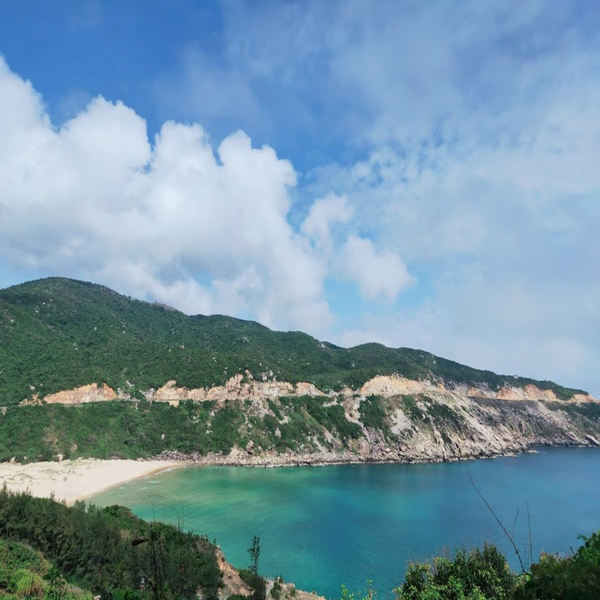 Bãi Gốc Phú Yên còn có sự hiện diện của những ngọn núi phía xa ở sau lưng, là nơi cây cối mọc xanh um tùm