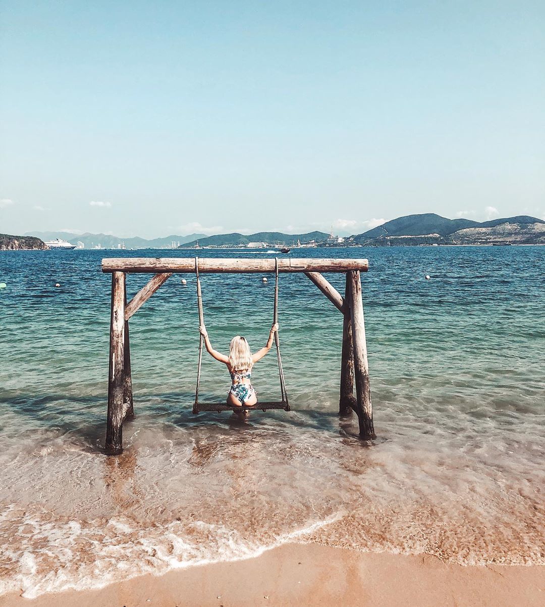 Bên cạnh đó, bãi biển đẹp như tranh cũng từng khiến bao người phải xuýt xoa. Đến tham quan nơi này, bạn sẽ được hòa mình vào làn nước trong xanh thấy tận đáy biển, tựa như một chiếc gương khổng lồ soi rọi giữa thành phố Nha Trang.