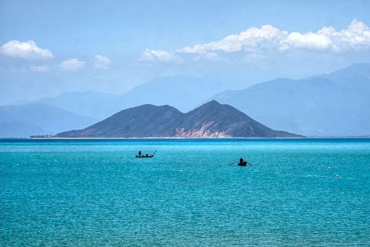 Khung cảnh yên bình cùng làn nước màu sắc đặc trưng tựa hệt một hòn ngọc giữa Vịnh Vân Phong