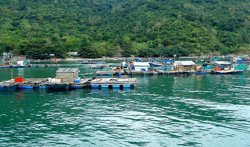 Những lồng bè nuôi cá nổi dập dềnh trên vùng biển Hòn Nghệ