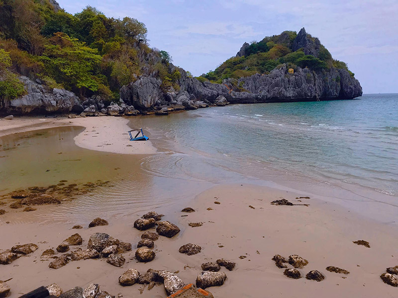Bãi tắm trên đảo mang vẻ đẹp yên bình với bờ cát mịn trải dài cùng làn nước biển trong xanh