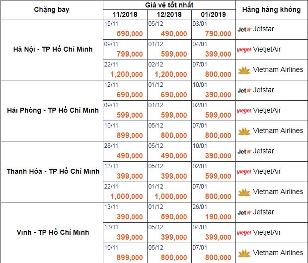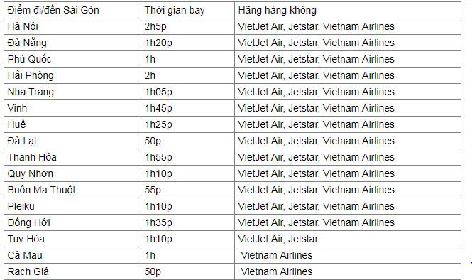 2. Giá vé máy bay giá rẻ các chặng nội địa đến TP Hồ Chí Minh