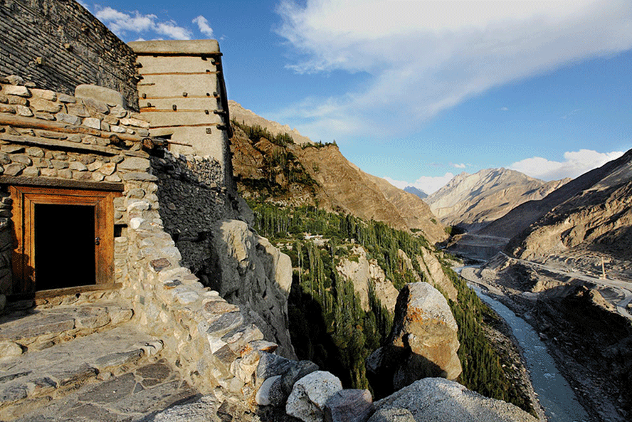 Pháo đài Altit: Altit có nghĩa là mặt này xuống và khu vực xung quanh pháo đài là nơi sinh sống của người Burusho . Ban đầu nó là quê hương của những nhà cầm quyền nhà nước Hunza , người mang tước hiệu Mir , mặc dù họ chuyển đến pháo đài Baltit hơi trẻ hơn gần ba thế kỷ sau đó. Altit Fort và đặc biệt là tháp Shikari là khoảng 1100 năm tuổi là di tích lâu đời nhất trong Gilgit-Baltistan.