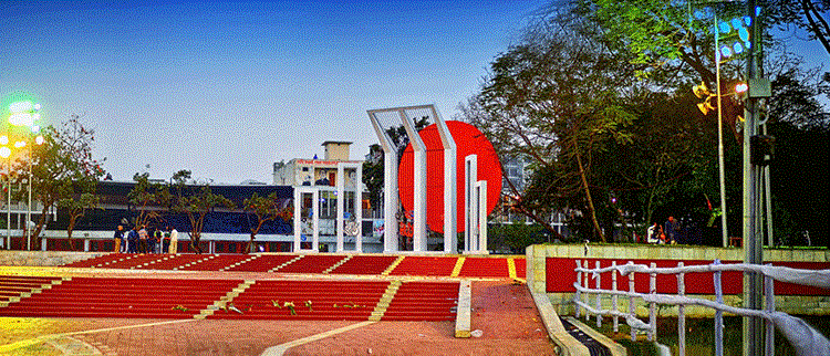 Đài tưởng niệm trung tâm Shahid Minar: Biểu tượng của chủ nghĩa dân tộc Bengali. Tượng đài này được xây dựng để tưởng nhớ các vị tử đạo của phong trào Ngôn ngữ lịch sử của năm 1952. Hàng trăm và hàng ngàn người với vòng hoa hoa và bó hoa thu thập vào ngày 21 tháng Hai hàng năm để tỏ lòng tôn kính trong không khí trang trọng. Lễ kỷ niệm bắt đầu lúc không giờ nửa đêm.
