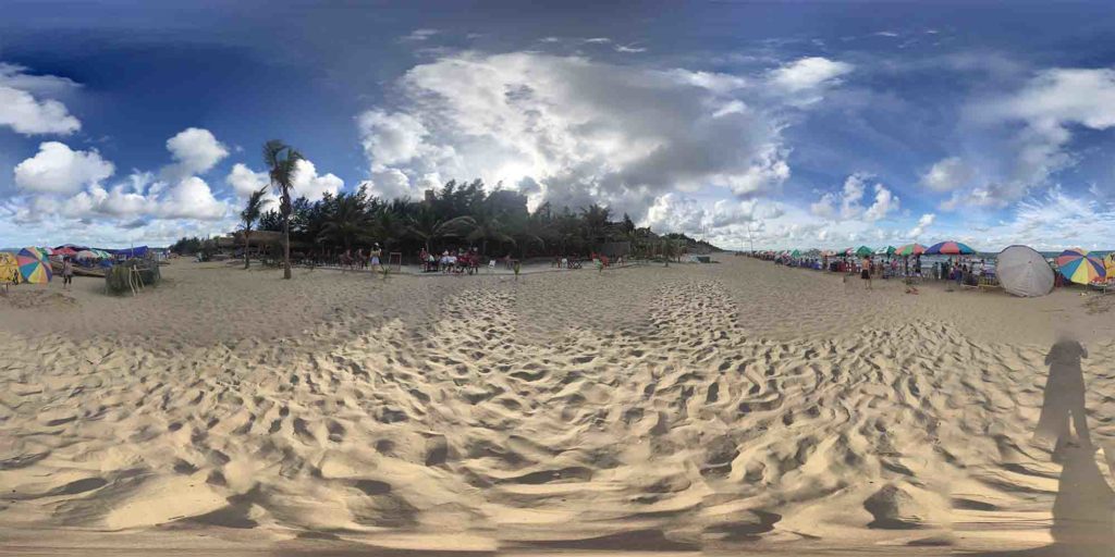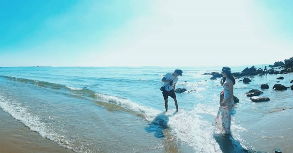 Bãi biển đẹp nguyên sơ, nước trong xanh, sóng hiền hòa. Bờ cát trắng chạy dài 20km chỗ nào cũng có thể tắm được.