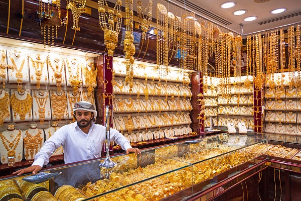 Chợ vàng Gold Souk - Khu chợ nổi tiếng thế giới này luôn lấp lánh với đủ loại kim loại quý hiếm và đá quý được trưng bày trong hàng trăm cửa hàng.