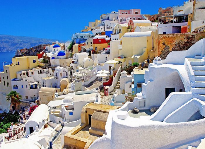 Tham quan làng Spectacular Oia - Ngôi làng này cũng là một trong những điểm ngắm hoàng hôn đẹp nhất thế giới. Mỗi khi hoàng hôn buông xuống, từng dòng người lại đổ về đây để được chìm đắm trong những khoảnh khắc từ khi mặt trời chuyển từ màu vàng sang màu đỏ. Cả một vùng biển trông như một cái chảo khổng lồ với sắc màu đỏ rực, nước biển đổi từ màu xanh sang dát bạc lóng lánh và huyền ảo. .