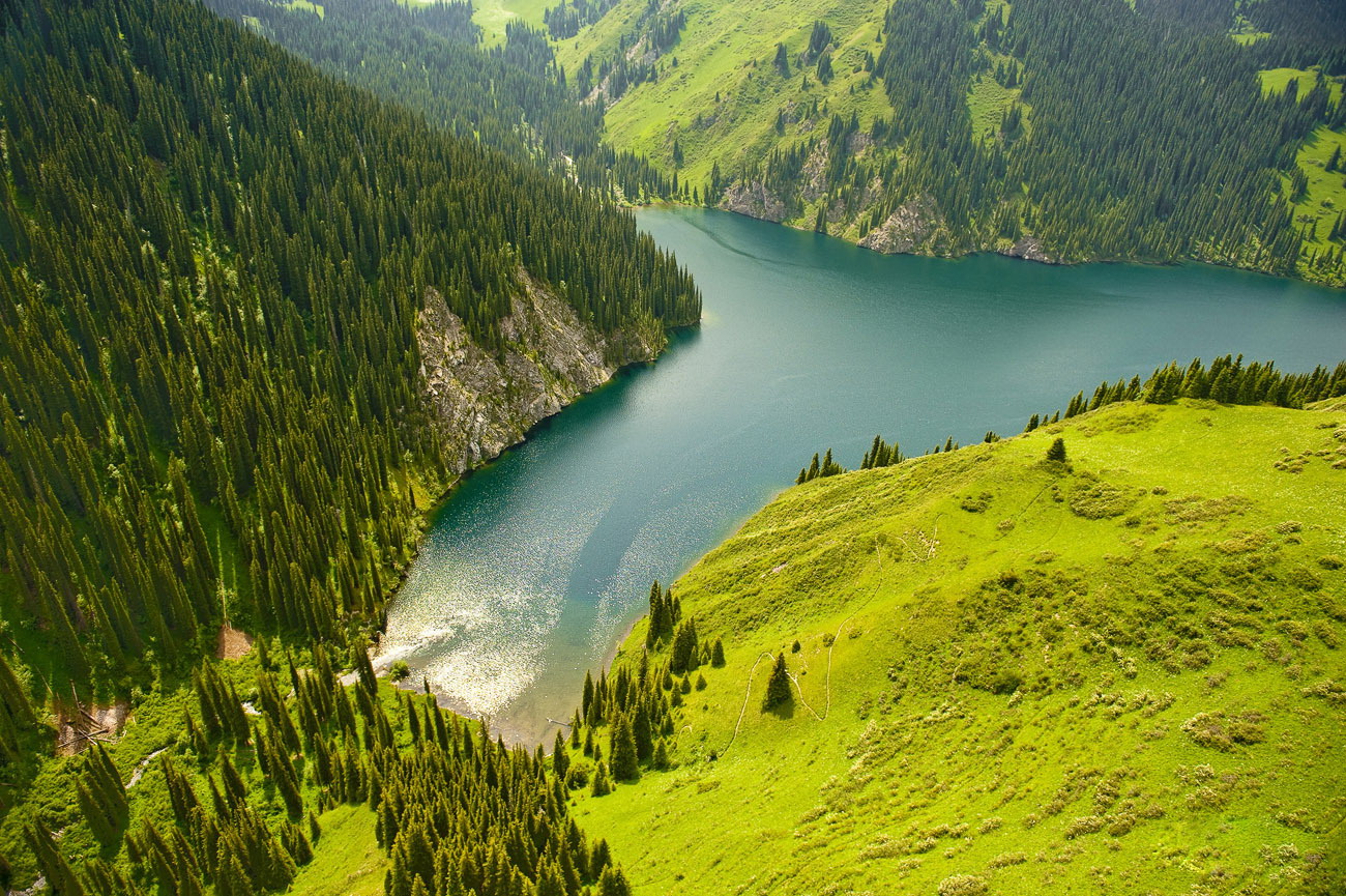 Đặt chân đến cố đô Almaty thơ mộng nằm ở độ cao 900m so với mực nước biển, bao quanh bởi ngọn núi Thiên Sơn huyền thoại, ắt hẳn bạn sẽ đắm chìm trong bầu không khí trong lành, cùng vẻ đẹp thần tiên của ba “viên ngọc quý” đó là hồ Almaty lớn, hồ Kaindy, hồ Kolsay. Nước trong hồ quanh năm trong vắt như tấm gương phản chiếu sắc xanh của bầu trời, những bông hoa ven hồ khoe sắc như điểm tô cho bức tranh thiên nhiên thêm phần sống động. Nếu muốn tìm hiểu đời sống du mục của người dân Kazakhstan hãy đến Alma Arasan - nơi có những mái lều Yurt lấp lánh giữa vùng thảo nguyên mênh mông. Còn gì tuyệt vời hơn khi được thưởng thức các món ăn truyền thống chế biến từ thịt gia súc và nhâm nhi ly sữa lên men tuyệt hảo… Đêm về, bên ánh lửa bùng cháy, những cô gái say xưa bên những điệu múa làm say lòng người. Ngoài ra, trang trại Surkan Falcon còn là nơi bạn chứng kiến người dân huấn luyện những con đại bàng dũng mãnh tung cánh vút lên bầu trời.