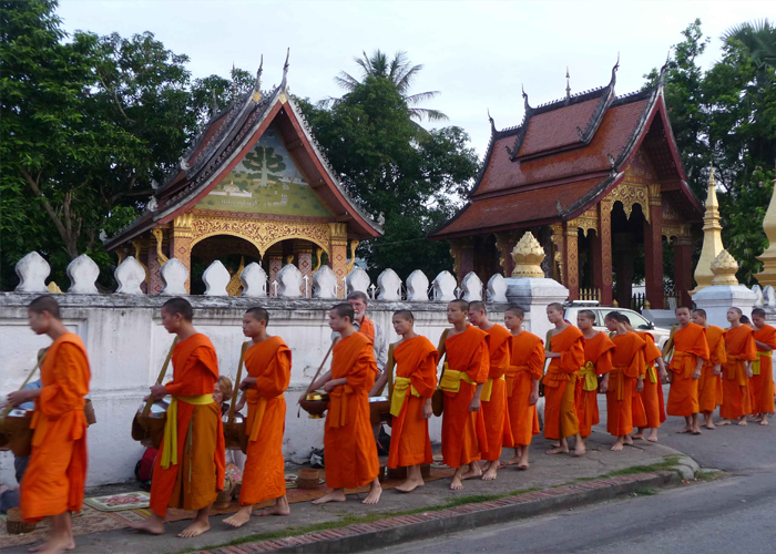 5:00-6:00: HDV đưa quý khách xem Tắc-Bạt – đây là một nét văn hóa đặc trưng của người Lào. Các nhà sư xếp thành một hàng đi qua các phố để nhận đồ người dân dâng lên.