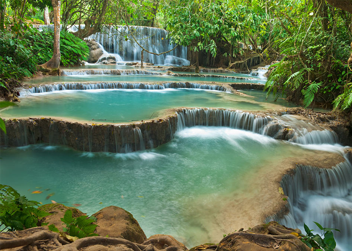 12:00: Ăn trưa ở nhà hàng. Đoàn tham quan Thác nước Kuang Si – Thác nước xanh như Ngọc. Kuang Si là một quần thể gồm nhiều ngọn thác lớn, nhỏ nằm trong công viên sinh thái dọc theo sông Mekong. Đây là một thắng cảnh hấp dẫn nhất của xứ sở Triệu Voi với những hồ nước tự nhiên tuyệt đẹp, được xếp vào danh sách những hồ bơi thiên nhiên đẹp nhất hành tinh. Đoàn thăm đỉnh Phousi - Là điểm cao nhất ở Luang Prabang ngắm hoàng hôn. Đỉnh Phousi là nơi lý tưởng để du khách phóng tầm mắt ngắm toàn cảnh cố đô yên bình thơ mộng bên dòng sông Mê Kông.