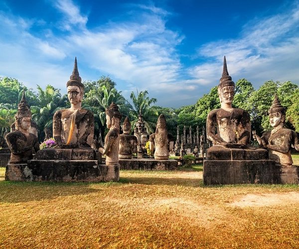 07:30: Thăm quan Vườn tượng phật với hàng trăm pho tượng khổ kính nằm dọc bờ sông Mê Kong.
