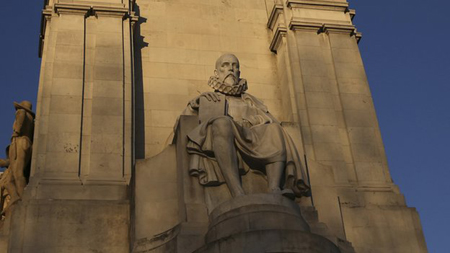 - Tượng Miguel de Cervantes – một tác giả, nhà văn học nổi tiếng của Tây Ban Nha với bộ tác phẩm nổi tiếng Don Quijote. Giữa trung tâm quảng trường là một tượng đài đồ sộ dành cho nhà viết tiểu thuyết, nhà thơ và nhà viết kịch Miguel de Cervantes, người được đánh giá là tác giả văn học hiện đại nhất Tây Ban Nha. Phần tháp của di tích bao gồm một tác phẩm tượng đá của Cervantes, dưới đế chân tượng có hai tác phẩm điêu khắc bằng đồng - nhân vật trong tiểu thuyết “Don Quixote” và “Sancho Panza”. Hầu hết các tượng đài được xây dựng từ năm 1925 đến năm 1930.