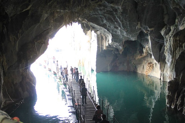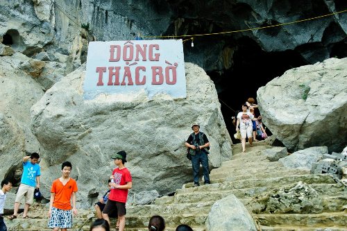 Đến thăm động Thác Bờ: Cửa động lớn, bên trong là tượng phật Tổ, Quan âm cao tới hơn 20m và tượng của các vị thần cai quản nơi đây, ngoài ra trong động có thêm ban thờ Bác Hồ luôn đượm mùi hoa tươi và hương trầm.