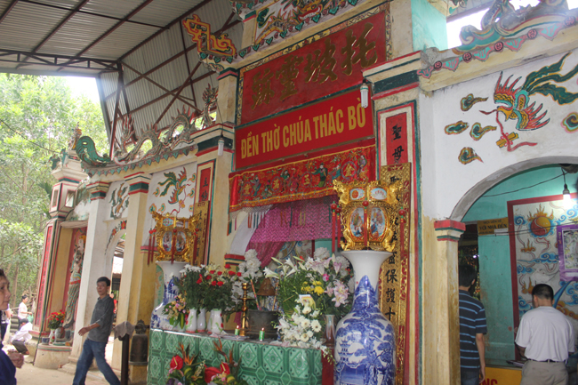 Tàu cập bến quý khách lên tham quan và làm lễ tại đền Bà chúa Thác Bờ.Đền thờ bà chúa Thác Bờ là Đinh Thị Vân người dân tộc Mường và một bà người dân tộc Dao .Tục rằng, 2 bà đã có công giúp vua Lê Lợi vượt thác Bờ đưa quân lên Mường Lễ (thuộc Sơn La) dẹp loạn đảng Đèo Cát Hãn. Sau khi mất, 2 bà thường hiển linh giúp dân, phù hộ cho trăm dân trong vùng mưa thuận, gió hoà nên nhân dân đã phong 2 bà làm thánh và lập đền thờ phụng.