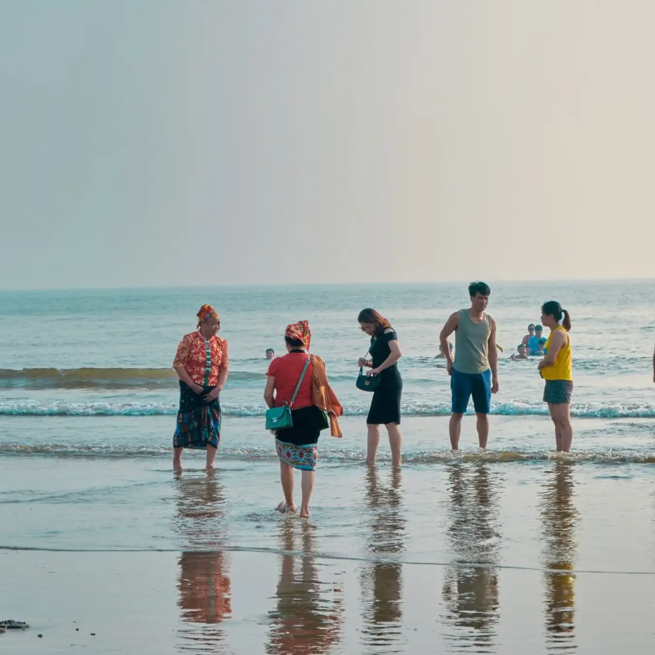 Du khách tắm biển vào buổi sáng tại biển Cửa Lò