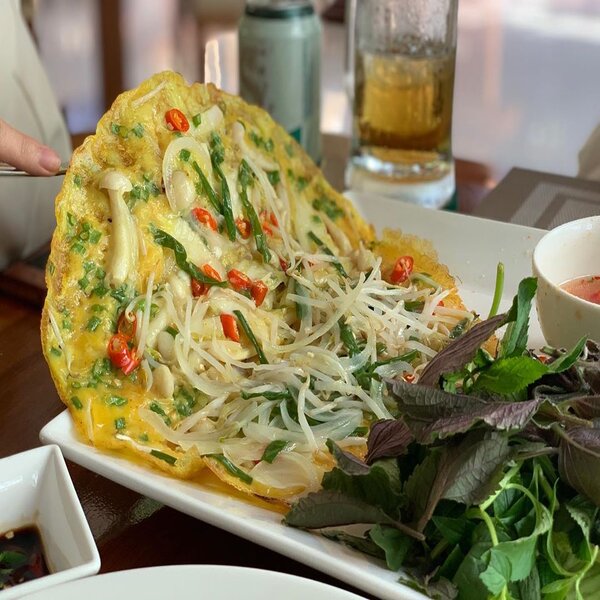 Thậm chí cả bánh xèo cũng được bán tại Hòn Tằm luôn