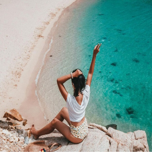 Bãi cát trắng trải dài tựa như vải lụa giữa biển khơi, làn nước trong xanh soi rõ cả rạn san hô sinh động dưới đáy biển, bờ biển trải dài chưa đến 500m này đã khiến nhiều du khách mê mẩn và chọn làm điểm nghỉ chân đầu tiên sau chuyến đi dài đến thành phố biển.