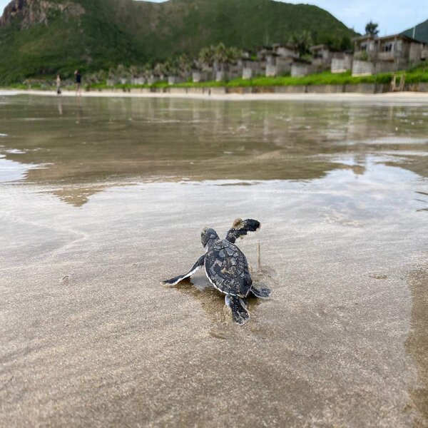 Những chú rùa biển con dễ thương đang bò trên bãi cát