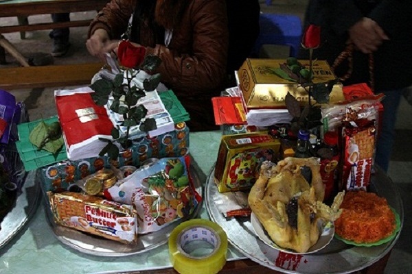 + Lễ mặn: Mâm xôi, gà (gà trống bày nguyên cả con)