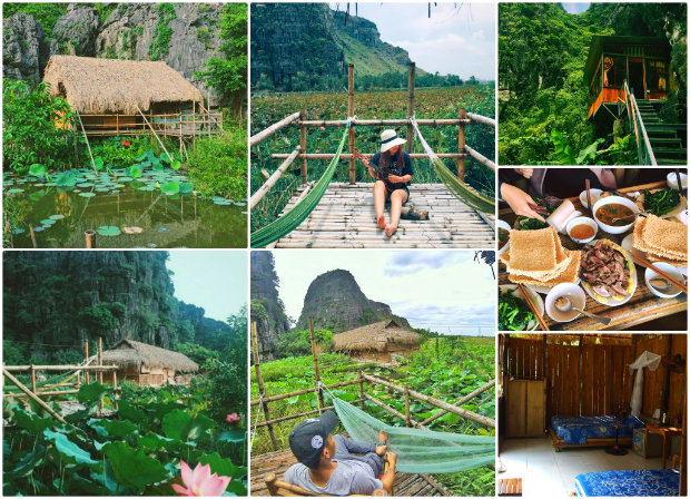 Những căn nhà lá đơn sơ nằm giữa chốn núi non hùng vĩ Ninh Bình, Nguyen Shack homestay hiện ra như một bức tranh về miền quê Việt Nam. Những căn nhà độc đáo này được xây dựng kiên cố, riêng biệt, mang đến không gian riêng cho du khách. Đặc biệt, trong thời gian lưu trú tại đây, du khách sẽ được chiêu đãi những món ăn độc đáo của Ninh Bình và được sử dụng xe đạp miễn phí để dạo chơi, ngắm cảnh.