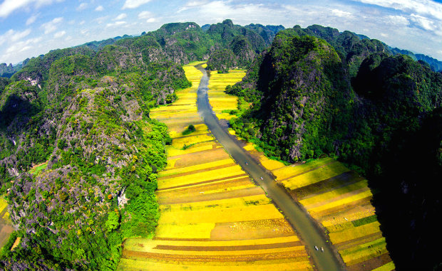 Mùa lúa chín vàng là thời điểm lí tưởng để đến Ninh Bình.