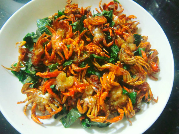 Cua đồng rang lá lốt - Món ăn miền quê được khách du lịch yêu thích khi đến với Ninh Bình.