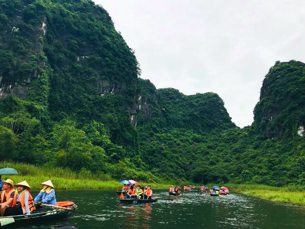 Ngồi thuyền chiêm ngưỡng cảnh đẹp các danh thắng là một trong những điều thú vị không thể bỏ qua khi đến Ninh Bình.