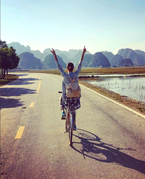 Hãy chọn một buổi chiều nắng nhẹ để đạp xe ngắm cảnh đẹp núi non Ninh Bình.