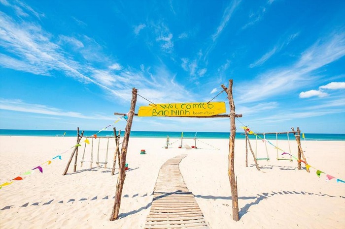 Du lịch Quảng Bình không thể bỏ qua bãi biển Bảo Ninh. Đây là một bán đảo nằm ở phía Đông thành phố Đồng Hới, được nối liền với thành phố Đồng Hới bằng cây cầu Nhật Lệ xinh đẹp. Bãi biển Bảo Ninh quyến rũ bởi vùng trời bình yên đến tận cùng.
