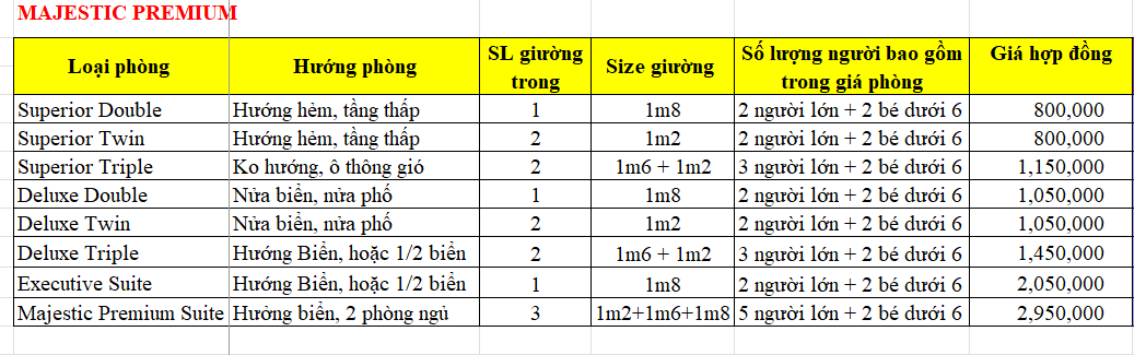 - Giá phòng trên đã bao gồm phí phục vụ và KHÔNG BAO GỒM THUẾ VAT