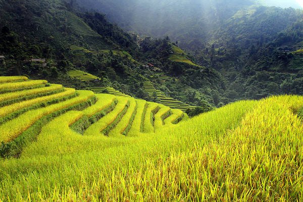 Mùa thu cũng là mua mà những thửa ruộng ở Hà Giang vào kì chín rộ. Hãy thử tưởng tượng, bạn đang đứng trên ngọn đèo cao, phóng tầm mắt ra xa, phía dưới là những dãy ruộng bậc thang vàng một màu lúa chín. Cảnh đẹp của những ruộng bậc thang bất tận này đã được công dận di tích quốc gia, mà nổi bật là huyện Hoàng Su Phì.