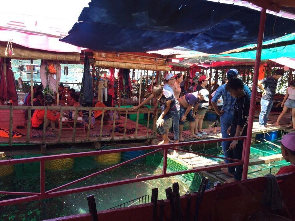 Bạn được thưởng thức nhiều loại hải sản tươi sống được nuôi ngay tại bè, nào là cá, ghẹ, ốc, và đặc biệt là tôm hùm nhé!