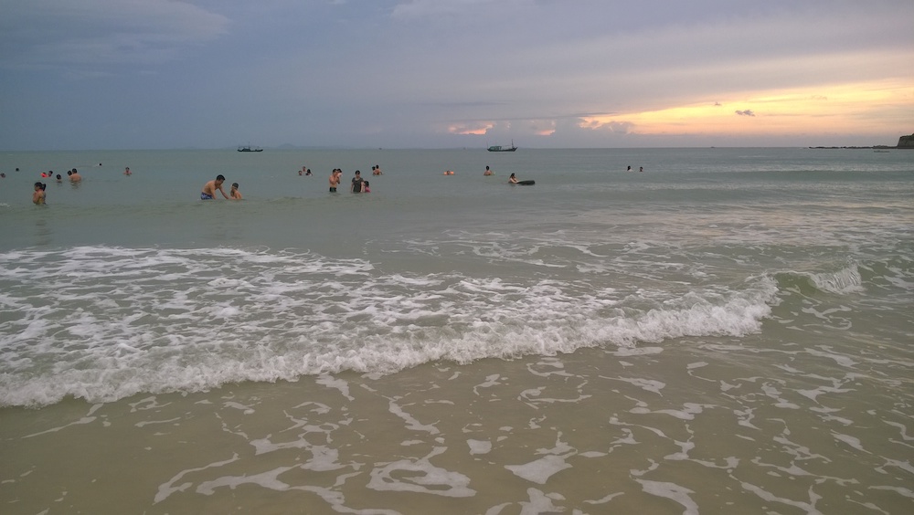 Vào buổi chiều tà, rất nhiều người dân đến đây để tắm biển thư giãn. Nếu ngại đông người thì bạn có thể đến sớm hơn. Hoàng hôn ngắm nhìn từ đây là số dách luôn đấy nhé!