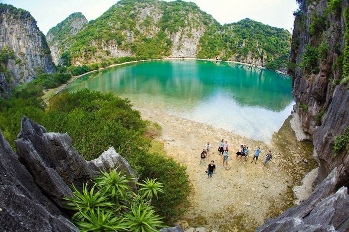Đảo Mắt Rồng nằm ở phía Nam vịnh Hạ Long, nơi sở hữu những bãi tắm cát trắng tự nhiên vô cùng bắt mắt. Đặc biệt, nơi đây có một cảnh quan kỳ thú là hồ nước hình tròn ngay giữa đảo, bao quanh bởi dãy núi đá vôi, được người ta ví như là mắt rồng. Theo kinh nghiệm du lịch Hạ Long của Asiadragontravel và nhiều du khách thì đây chính là địa điểm sống ảo lý tưởng không thể bỏ qua.