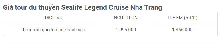 5.3. Giá tour du thuyền Sealife Legend Cruise Nha Trang
