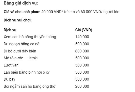 Tham khảo bảng giá dịch vụ để chọn lựa những hoạt động phù hợp với kinh phí nhé