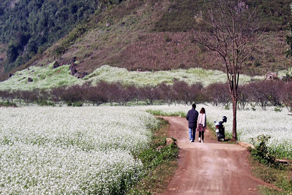 Tiếp theo phải kể đến sắc trắng tinh khôi của hoa cải, hoa ban Đà Lạt dọc theo những con đường đến xã Tu Tra, Đơn Dương tạo nên khung cảnh vừa lãng mạn lại vừa trữ tình nét Tây Bắc.