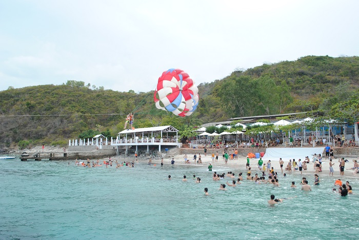 - Chơi các trò chơi cảm giác mạnh trên biển: bay dù, môtô nước, lặn bình hơi khám phá đại dương.