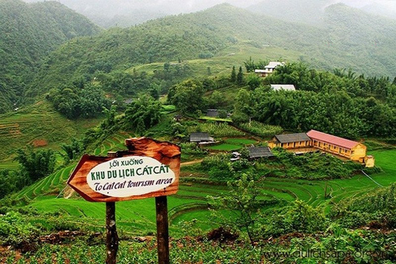 Tới đầu bản Cát Cát, bước theo những bậc đá dẫn xuống thung lũng, cảnh sắc làng quê yên bình hiện ra với những mái nhà chấm phá trên những thửa ruộng bậc thang, điểm xuyết những bụi giang, trúc, vầu xanh tốt... Điểm nổi bật của bản Cát Cát là đến đây vào bất kỳ tháng nào trong năm, du khách cũng được hòa mình vào những cánh đồng hoa ngút ngàn, trải đều tăm tắp như hoa bất tử, hoa hướng dương, hoa hồng ri, hoa cánh bướm… xen lẫn màu xanh của ruộng bậc thang tạo nên bức tranh thiên nhiên thơ mộng, lãng mạn.
