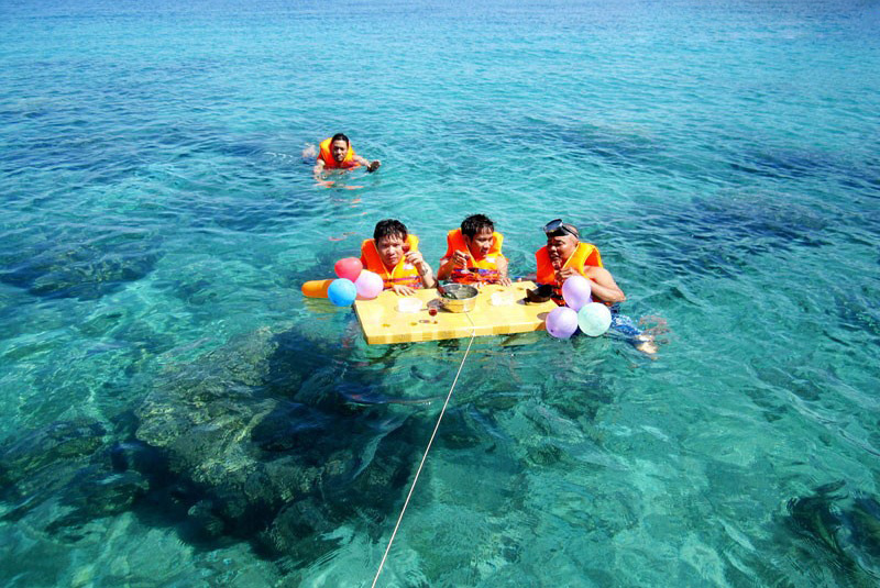 Quý khách dừng chân tại quán hải sản khu vực ngoài vịnh – đoàn tự do thưởng thức hải sản (chi phí tự túc) sau đó đoàn về đất liền dùng cơm trưa tại nhà hàng Vĩnh Hy.