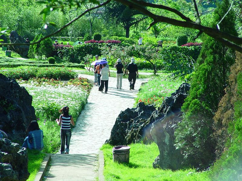 15h00: Hướng dẫn viên đưa quý khách (đi bộ) thăm quan công viên núi Hàm Rồng, vườn lan Đông Dương với đủ loại, muôn sắc màu; vượt qua Cổng Trời, Sân Mây - nơi giao thoa của đất trời, ngắm toàn cảnh Sapa và chiêm ngưỡng ngọn núi Fansipan hũng vĩ.