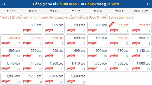 Lưu ý: Đây là giá vé 1 chiều, tính ở thời điểm hiện tại. Giá trên chưa bao gồm thuế phí.